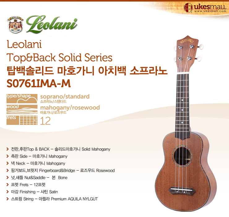 [Leolani] 탑백솔리드 마호가니 아치백 소프라노 S0761IMA-M